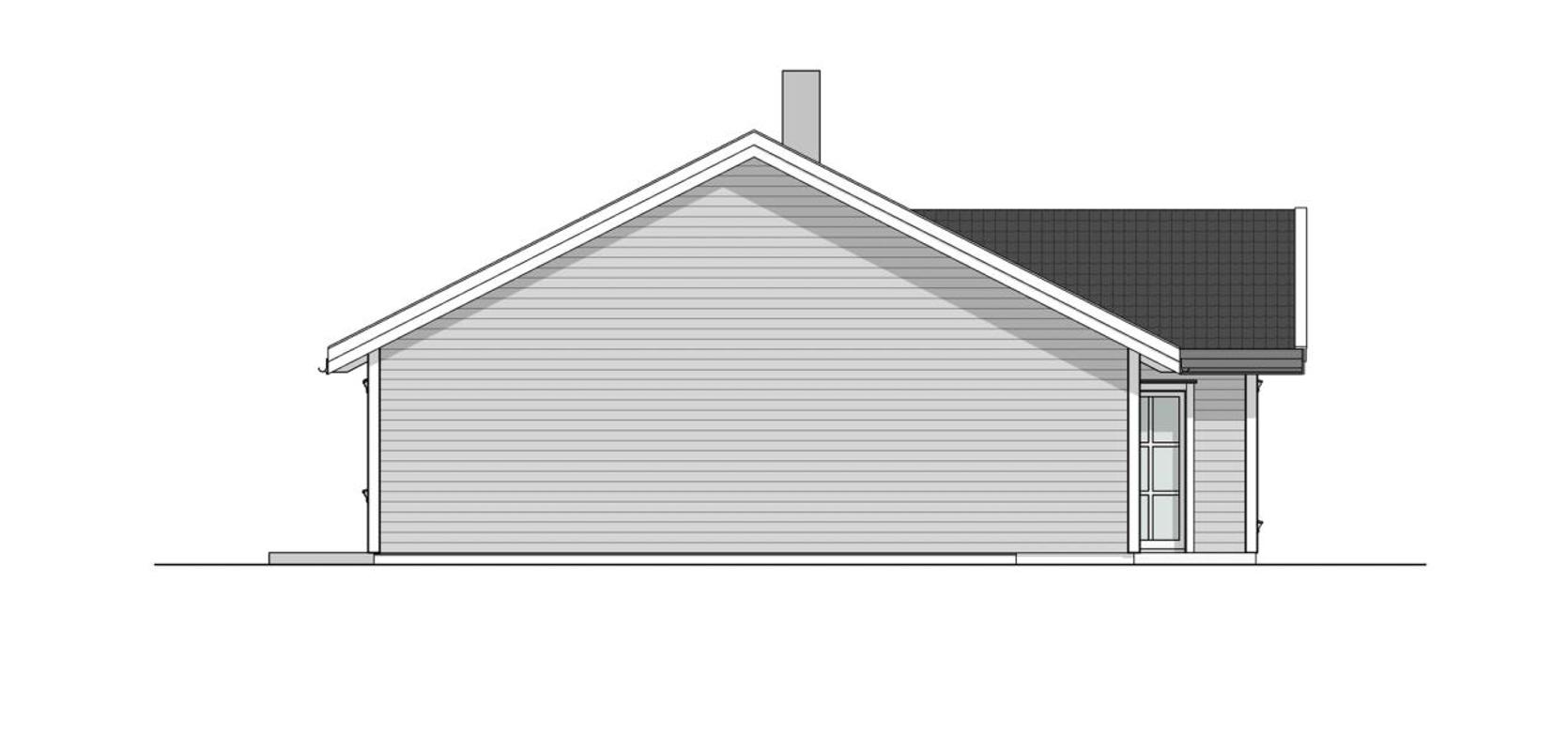 På andre siden av huset finner du stue og kjøkken. Kjøkkenet er romslig med vinkelløsning og er praktisk skjermet med vegg mot stue. Utenfor kjøkkenet finner du et eget vaskerom som har egen inngang fra uteområdet. Svært praktisk spesielt når man kommer hjem med vått og grisete tøy eller har hund. Det er store vinduer på alle veggene og stor skyvedør ut til terrassen. Vinkelløsningen gir et lunt og trivelig uterom.