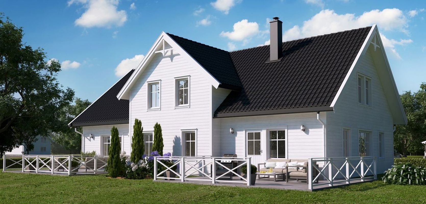 Mesterhus Norhild er en herskapelig og smart tomannsbolig med utbygd midtseksjon og svært praktisk planløsning.