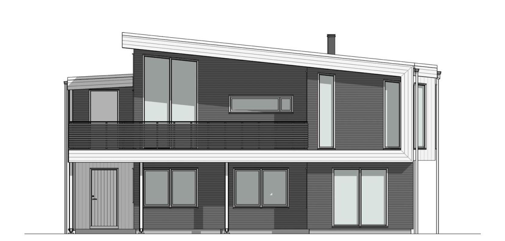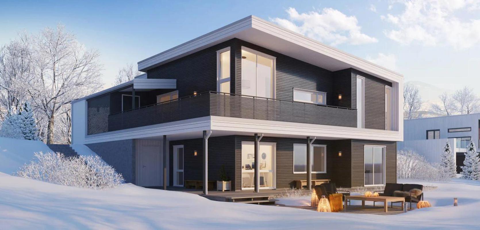 Mesterhus Signatur 306 er designet med stramme og rene linjer som gir det et moderne uttrykk. Et stort panoramavindu i hjørnet av stuen gir mye lys inn i fellesrommet og flott utsikt. Hovedboligen har tilsammen tre soverom, hvorav ett på samme plan som de andre hovedfunksjonene, noe som gjør dette til en bolig godt tilpasset alle livsfaser.