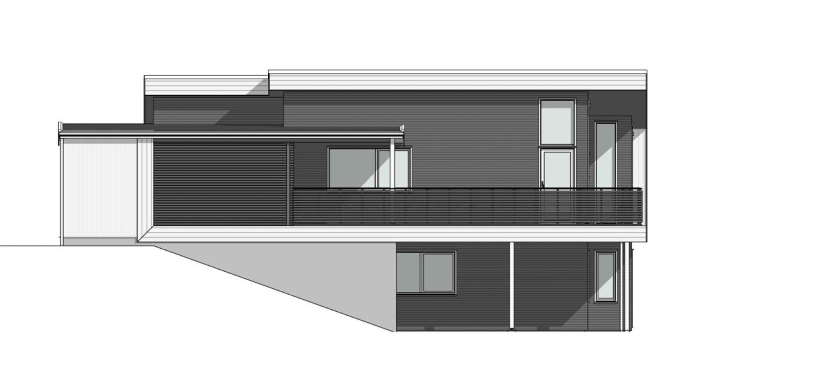 Signatur 306 er tilpasset skrå tomt, og hovedinngangen ligger på øvre plan, med kort vei til carporten. Rett ved siden av inngangen har du direkte adkomst til en utvendig sportsbod. Huset har også en stor, flott terrasse tilgjengelig fra stuen.