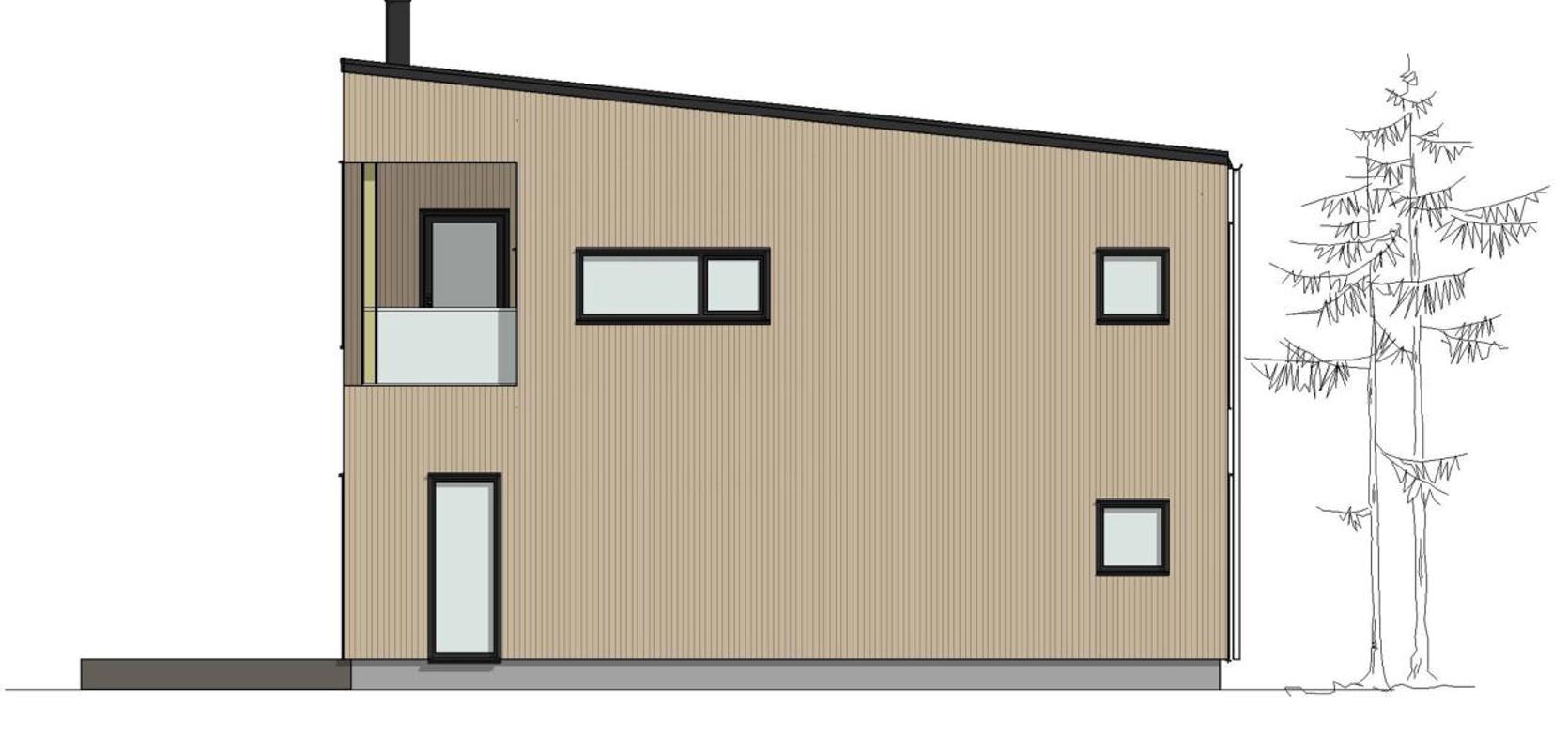 Skansen er et moderne hus med store vindusflater, pulttak og elegant stående trekledning. Samtidig som huset er svært stilig, har det alt en familie trenger.