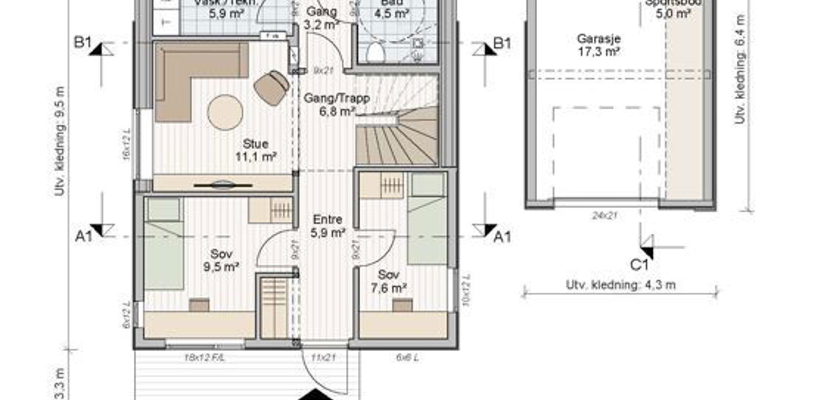 Planløsningen har også gode lagringsmuligheter og egen bi inngang med vaskerom.