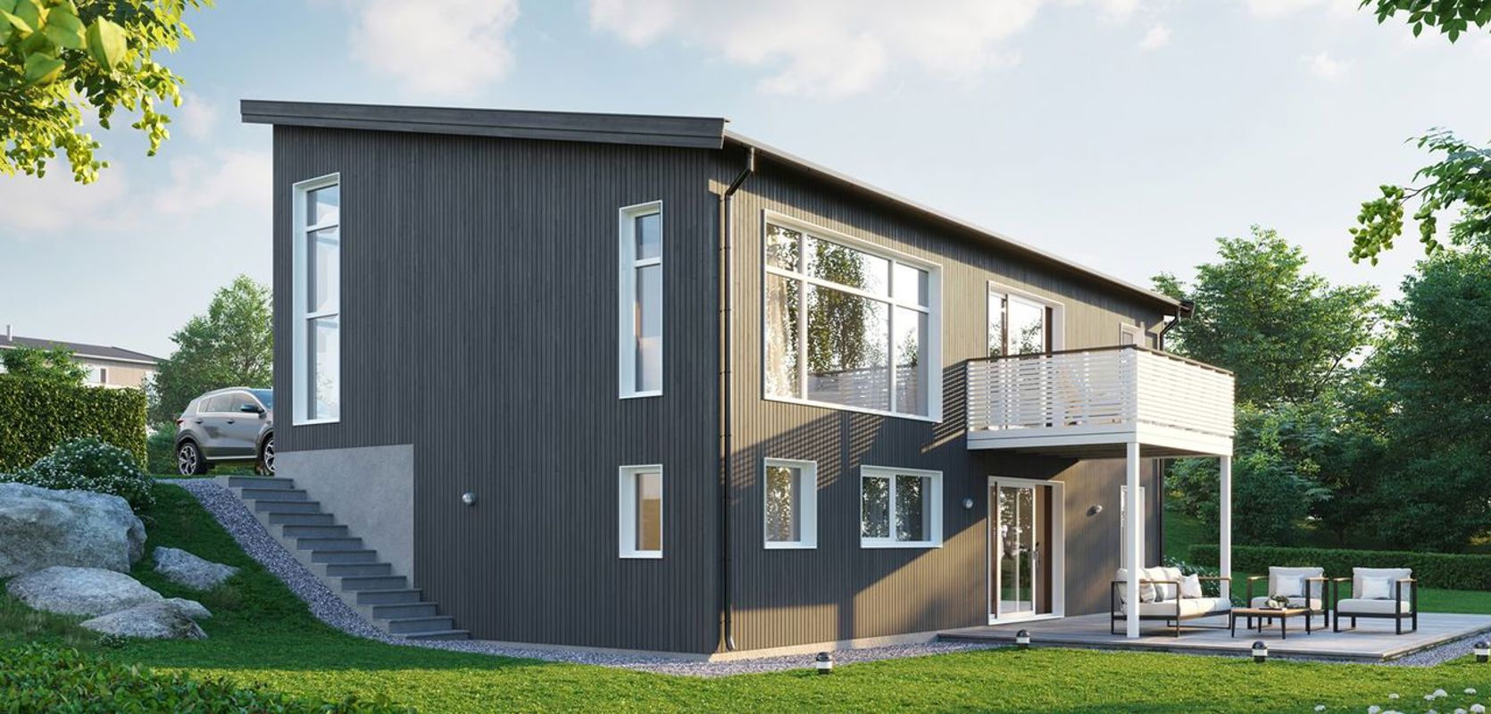 Med en stilren fasade, en romslig og åpen planløsning, god takhøyde og en fin balkong, er Hovin en bolig som vil passe perfekt for en familie som ønsker seg både plass og stil i et moderne hjem.