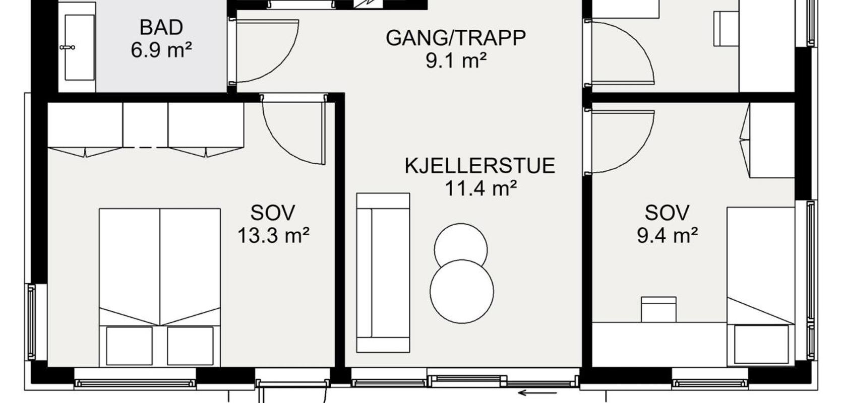 Fra stuen er det skyvedør ut til en romslig balkong. Denne etasjen har også ett soverom og bad/vaskerom. En trapp leder deg fra stuen og ned til en innholdsrik underetasje, som er et perfekt sted for barna å boltre seg. Her finner du tre romslige soverom, hvorav det største har en dør ut. Den romslige kjellerstuen, som passer bra som TV-stue, har skyvedør til uteplass. Det er også et praktisk bad og en bod i denne etasjen.