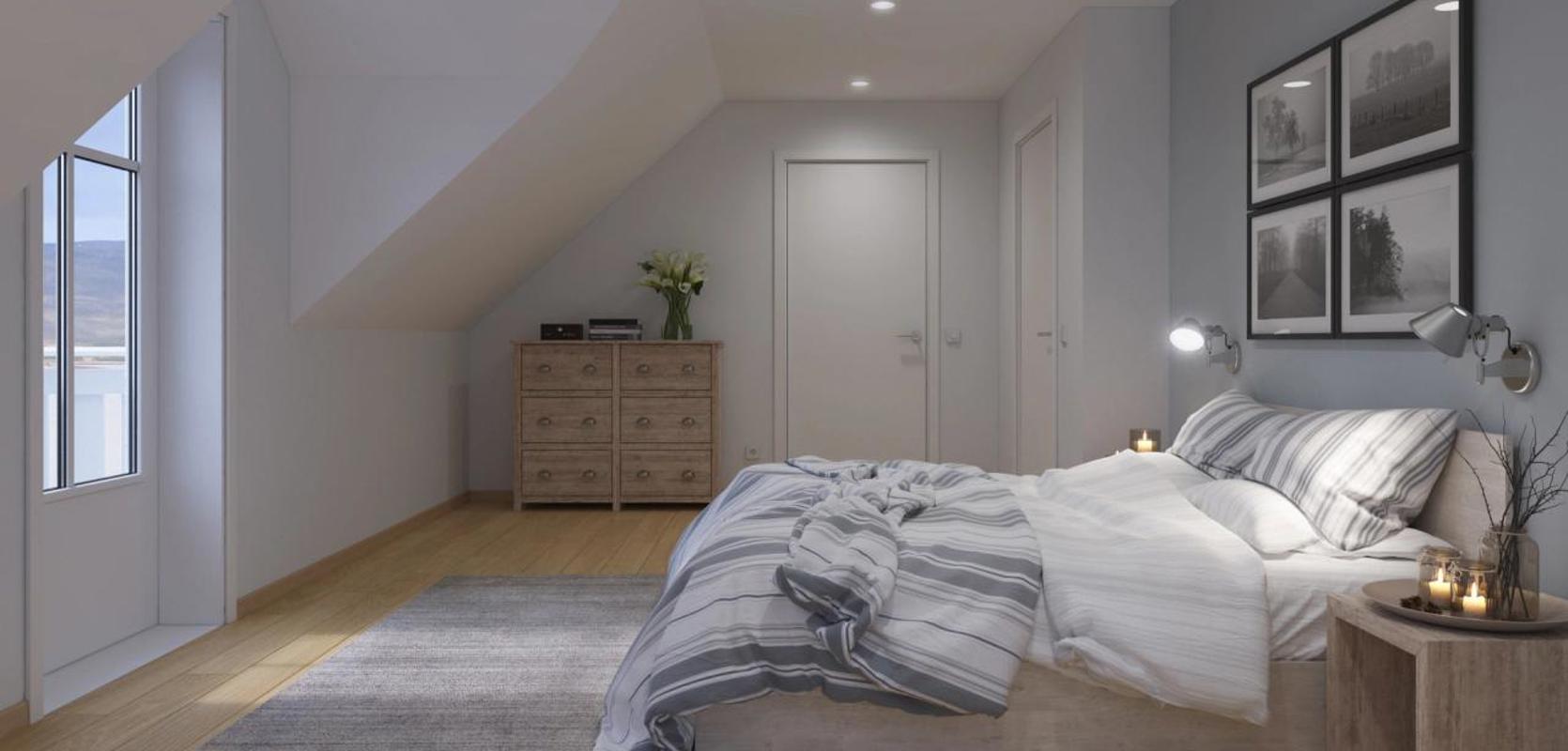 I andre etasje finner du en hyggelig loftstue og hele fire soverom, to av dem med utgang til egen balkong, og det største soverommet har også eget walk-in-closet. Det ene soverommet kan også brukes som lekerom eller oppholdsrom, om du ikke har behov for så mange soverom. Det er også et stort og flott bad på dette planet.
